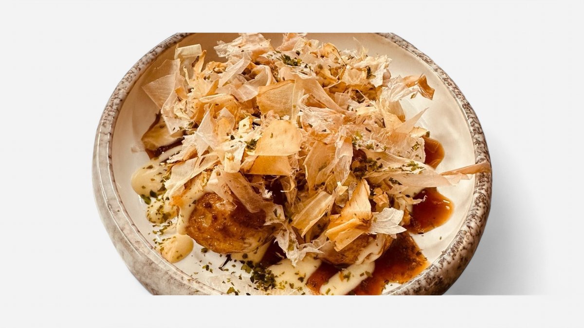 CZ: Japonská pochoutka ve tvaru koule, plněná nakrájenou chobotnici v těstu EN: A Japanese delicacy in the shape of a ball, filled with sliced octopus in batter