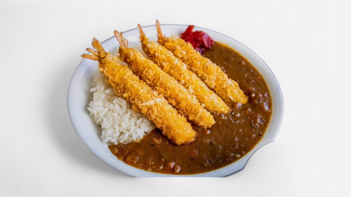CZ: 4ks krevety v panko strouhance, kare omáčka, rýže EN: 4pcs prawns in panko breadcrumbs, kare sauce, rice