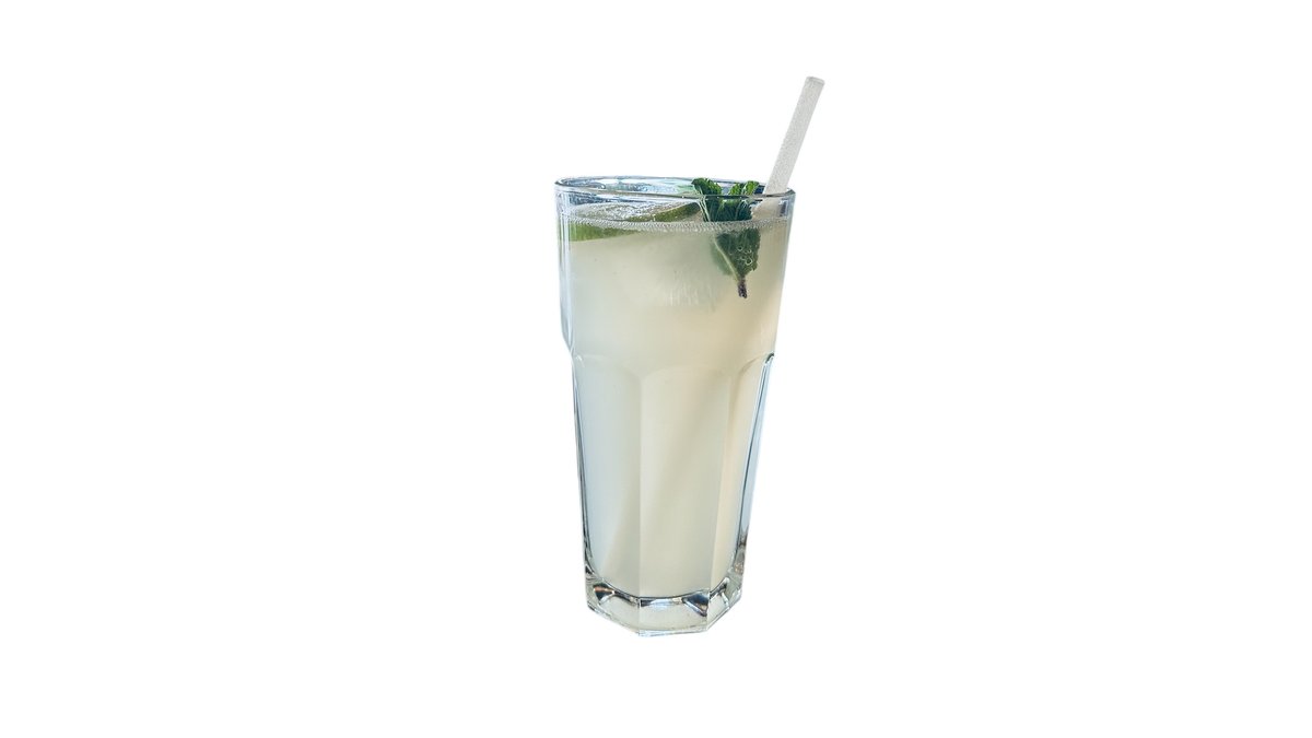 CZ: Domácí okurková limonáda, perlivá voda, citron, máta. EN: Home-made cucumber lemonade, sparkling water, lemon, mint.