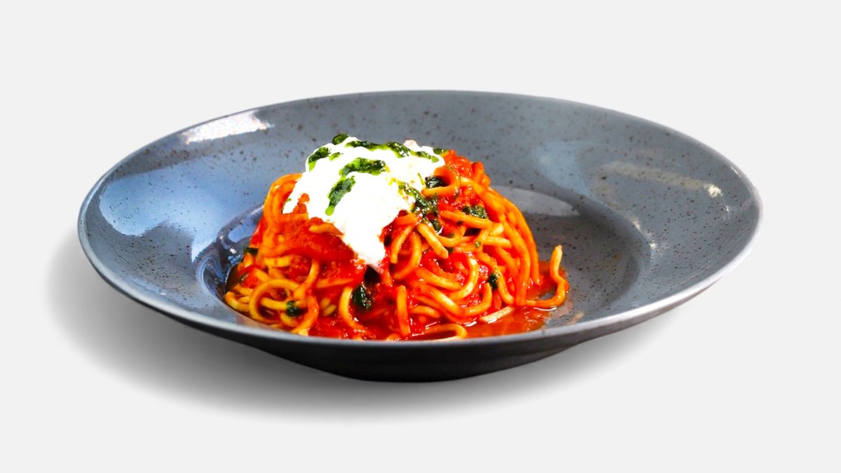 Spaghetti con pomodoro fresco e Mozzarella stracciatella