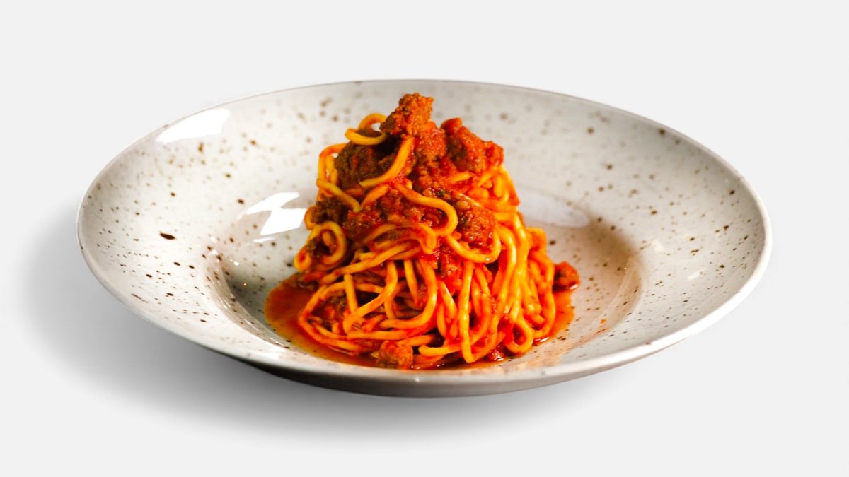Domácí špagety s ragù Bolognese z mletého masa a drcených rajčat.(1,3,7,9,12)