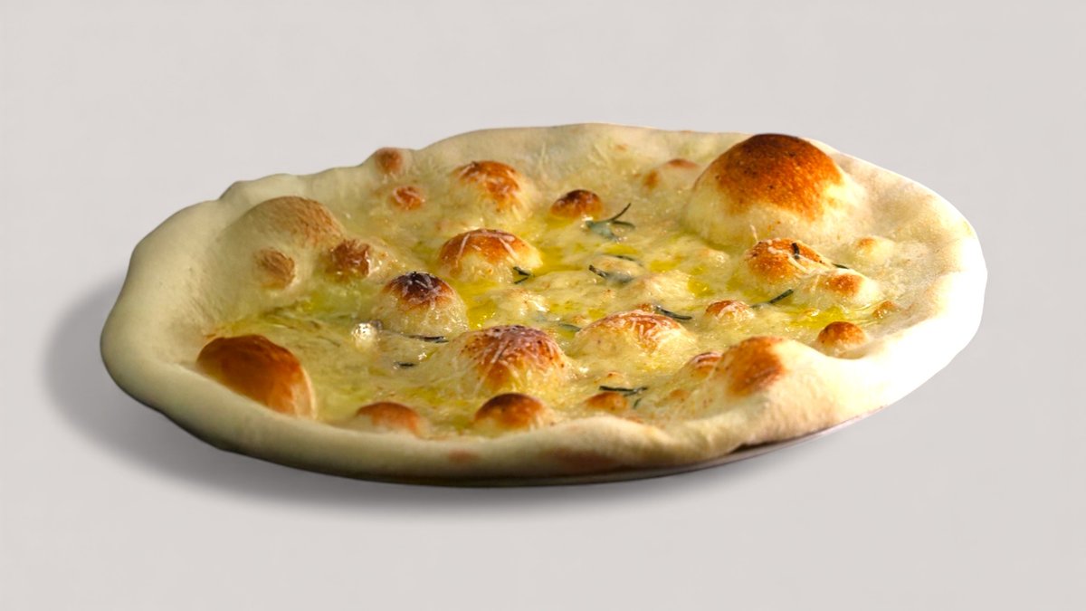 italsky pečený pizza chleba, ochucuje se čerstvým česnekem, rozmarýnem a parmazánem.
