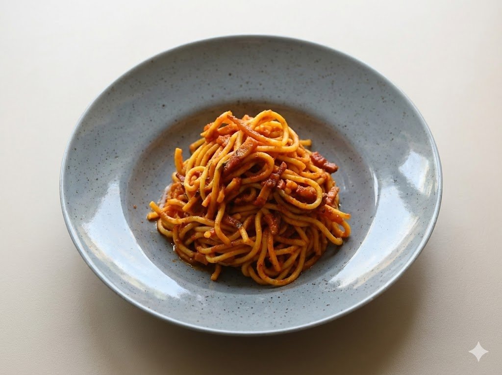 italská slanina, červené víno cibule, česnek, čili, rajčata, parmezán (1,3,7,12)