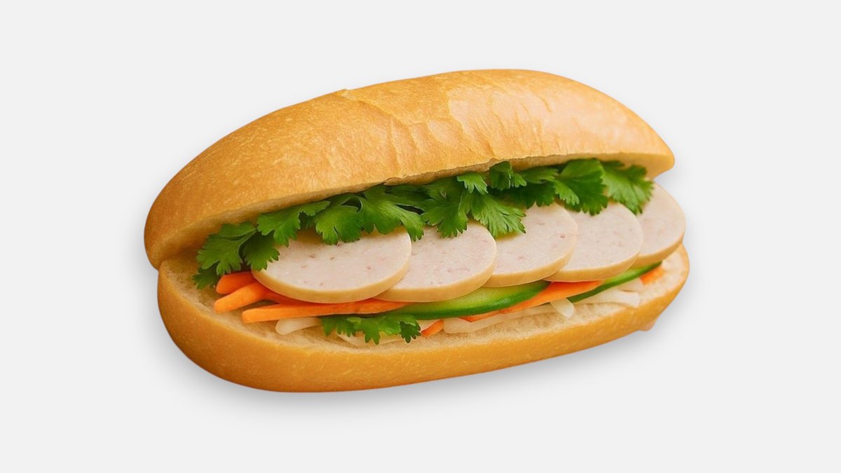 Crispy Vietnamese baguette filled with fresh vegetables, herbs, and authentic ingredients.