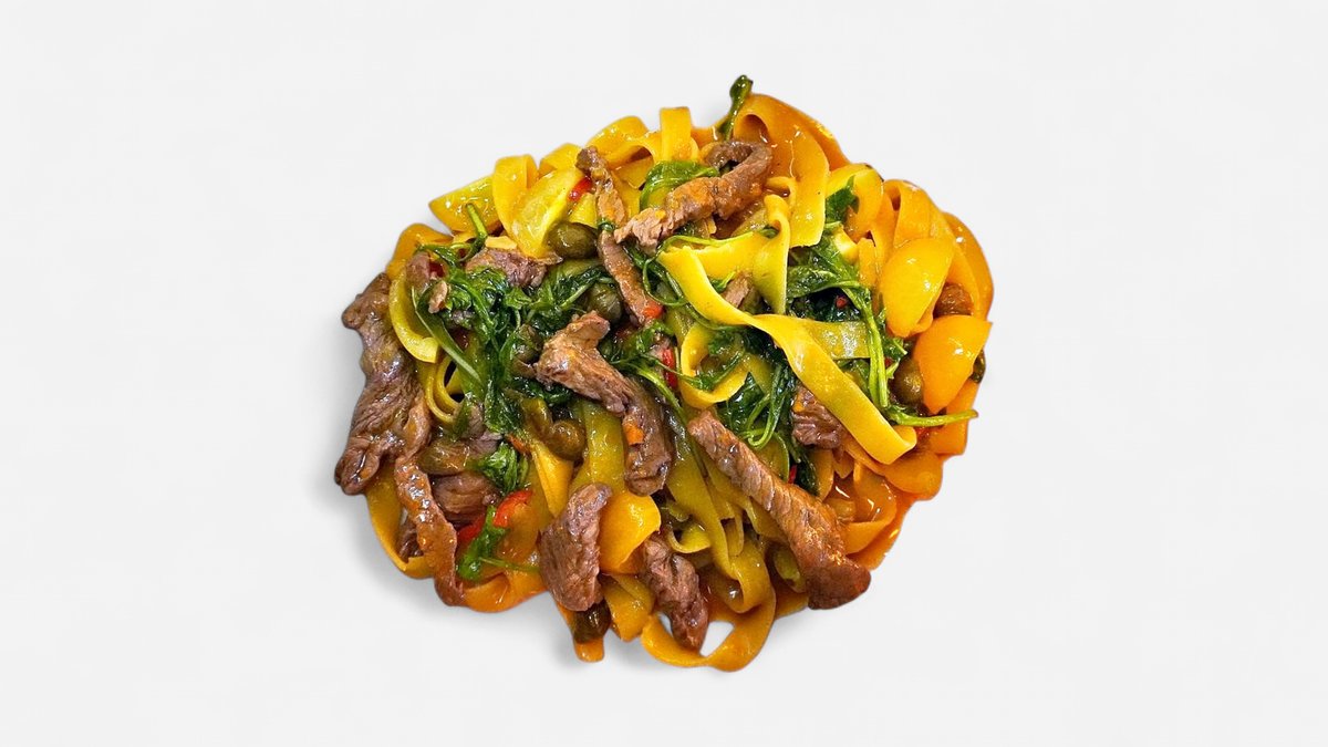 Hovězí maso, kapary, rukola, cherry rajče, worcesterová omáčka, chilli