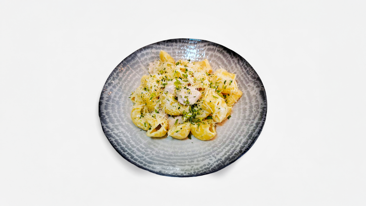 Kuřecí maso, houba shimeji, smetana, parmazán, petržel