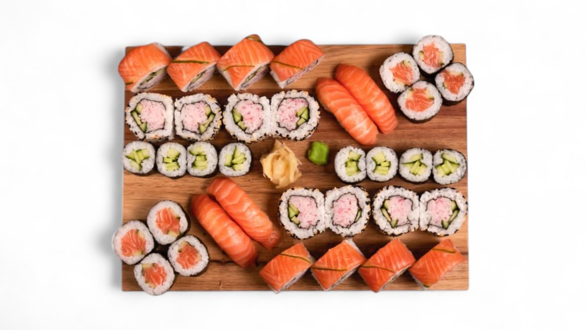 12 ks Maki Losos, 13 ks Nigiri Mix, 5 ks Futomaki, 8 ks California Sashimi Losos a Tuňák