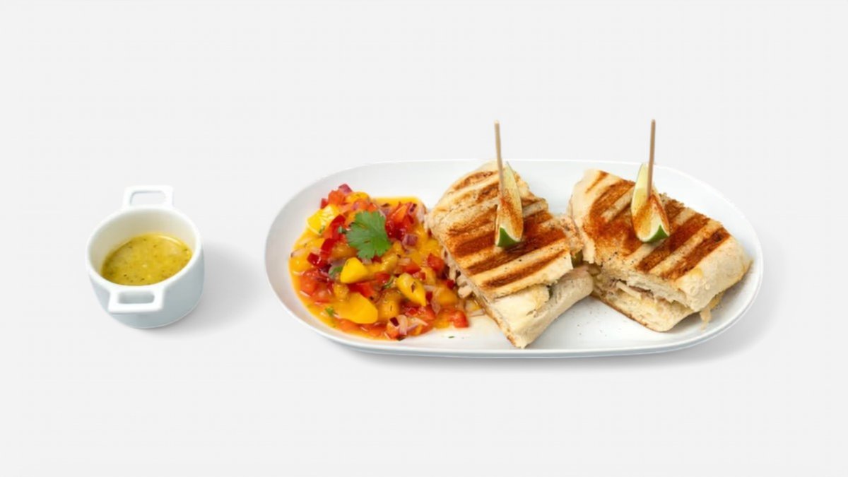 Dokonale křupavý, pečlivě grilovaný sendvič, ve kterém se snoubí šťavnaté trhané vepřové z lokální farmy, kvalitní šunka, jemně roztavený ementál a nakládaná okurka. Tenká vrstva hořčice dodává lehkou pikantnost, zatímco máslem potřená kůrka se na grilu opeče dozlatova a získá neodolatelnou křupavost. Podáváme s čerstvou, lehce sladkou a osvěžující mangovou salsou, která dokonale vyvažuje bohaté chutě sendviče, a extra mojo omáčkou, která podtrhuje autentickou kubánskou atmosféru. Každé sousto přináší dokonalou rovnováhu šťavnatosti, křupavosti a výrazných chutí, doplněnou o osvěžující limetku a jemný nádech sladké papriky. Skutečný kousek Kuby na vašem talíři!