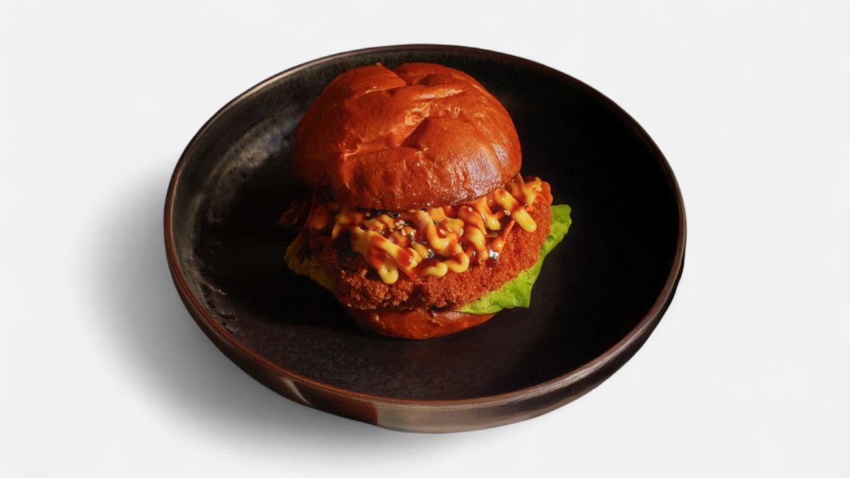 krevety, panko, mléčná bulka od Ze Mě projekt, zelenina, okonomiyaki omáčka, majonéza příloha: salát se sezamovým dresinkem