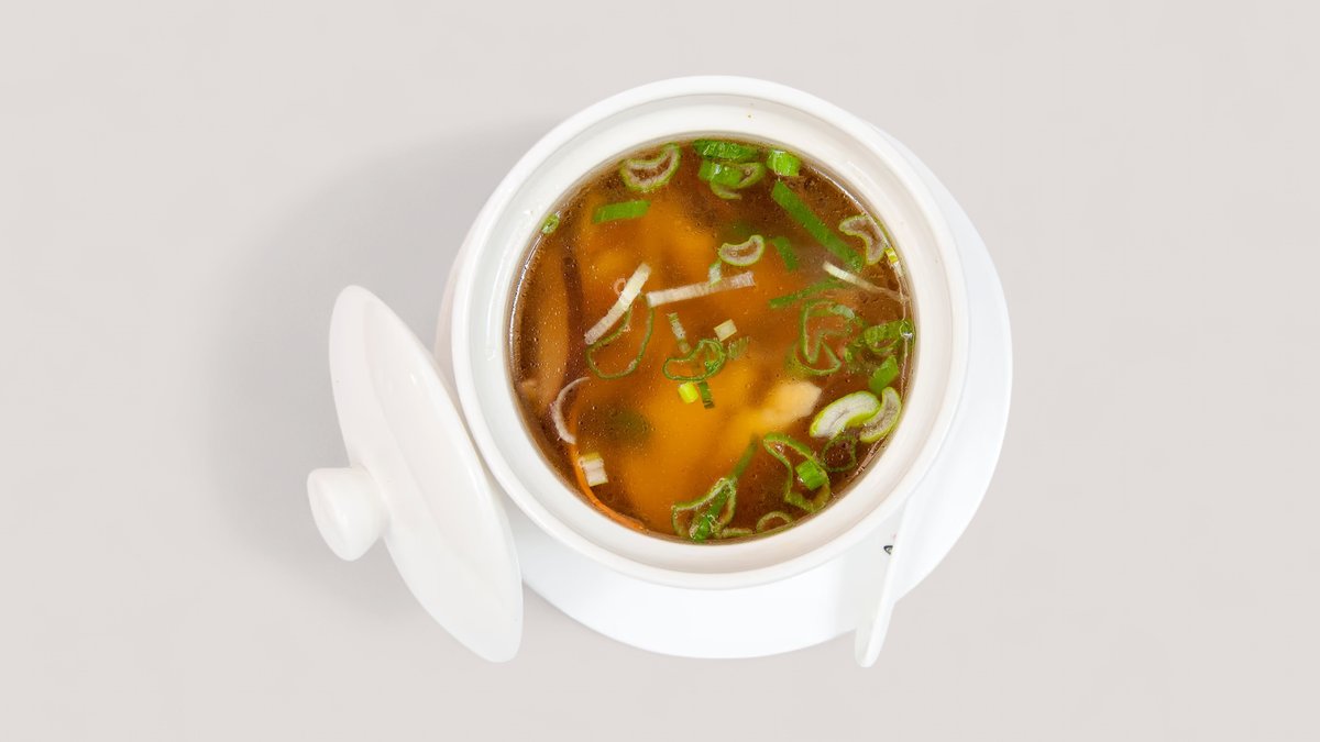 B3. Pikantní polévka, hovězí s bambusem a houbami, salát, rýže