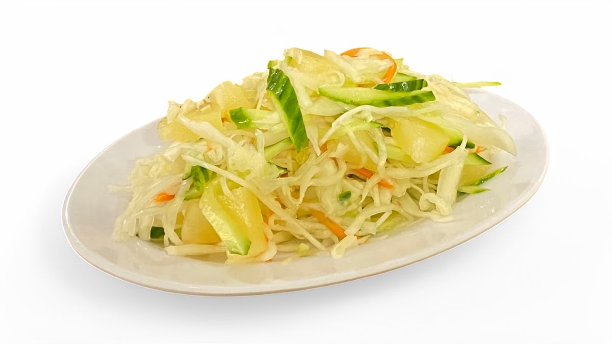 Smažené závitky s rýžovými nudlemi, salátem a omáčkou