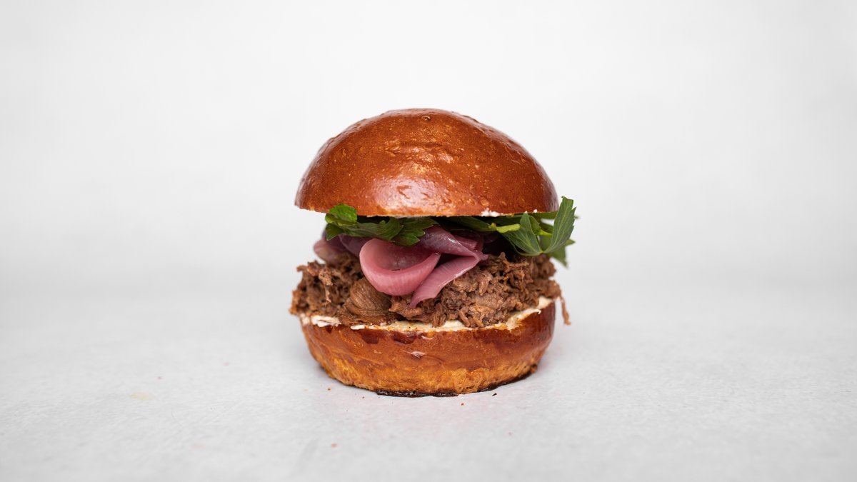 trhané kachní maso, cibulový dresink, zkaramelizovaná cibulka, ledový salát, belgické hranolky, nachos