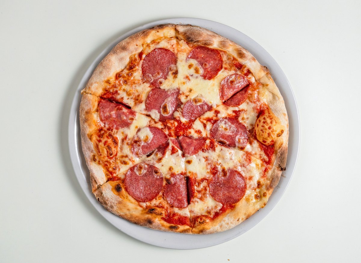 salámová SPECIÁL - tomat, mozzarella, šunka, slanina, Herkules, kukuřice, česnek