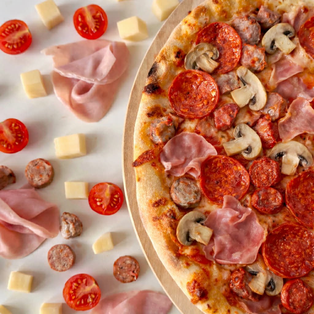A pizza that will satisfy you. Original taste, guaranteed quality from first-class ingredients for your satisfaction.