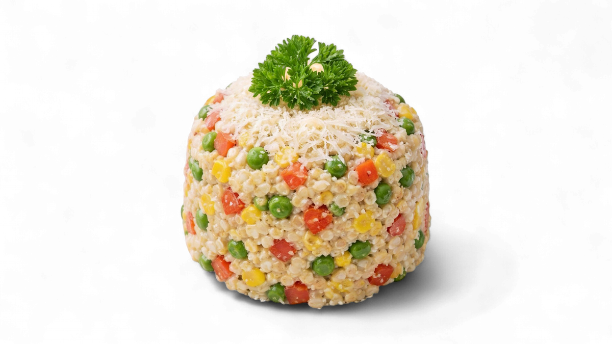 Zeleninové rizoto sypané sýrem.