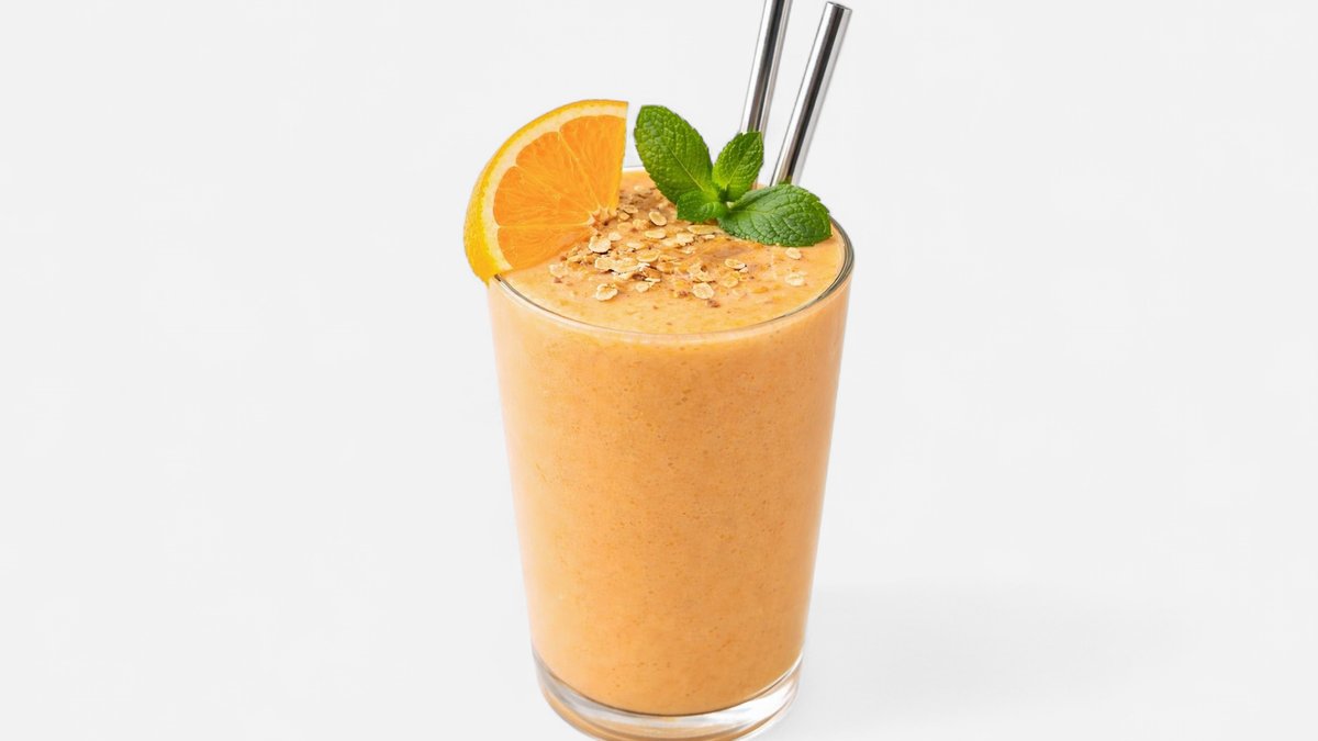Pomeranč, mrkev, mandlové mléko, zázvor.