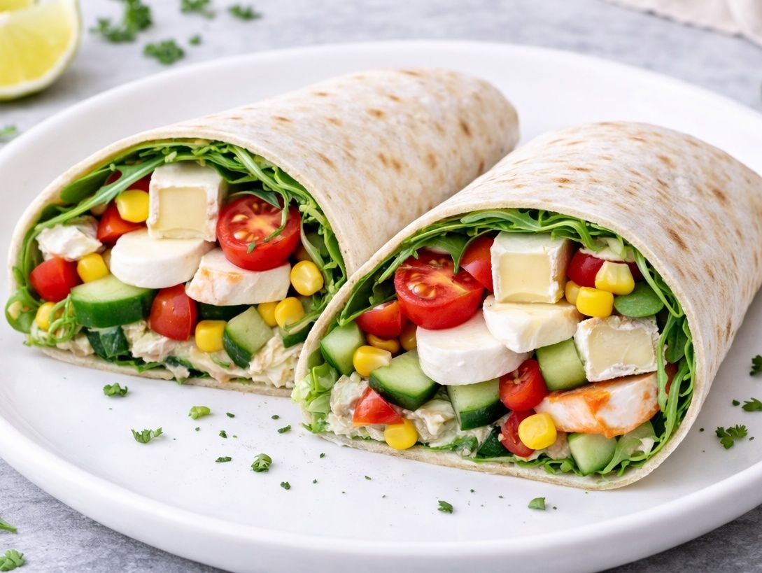 Lavaš s mozzarellou, hermelínem a zeleninou.