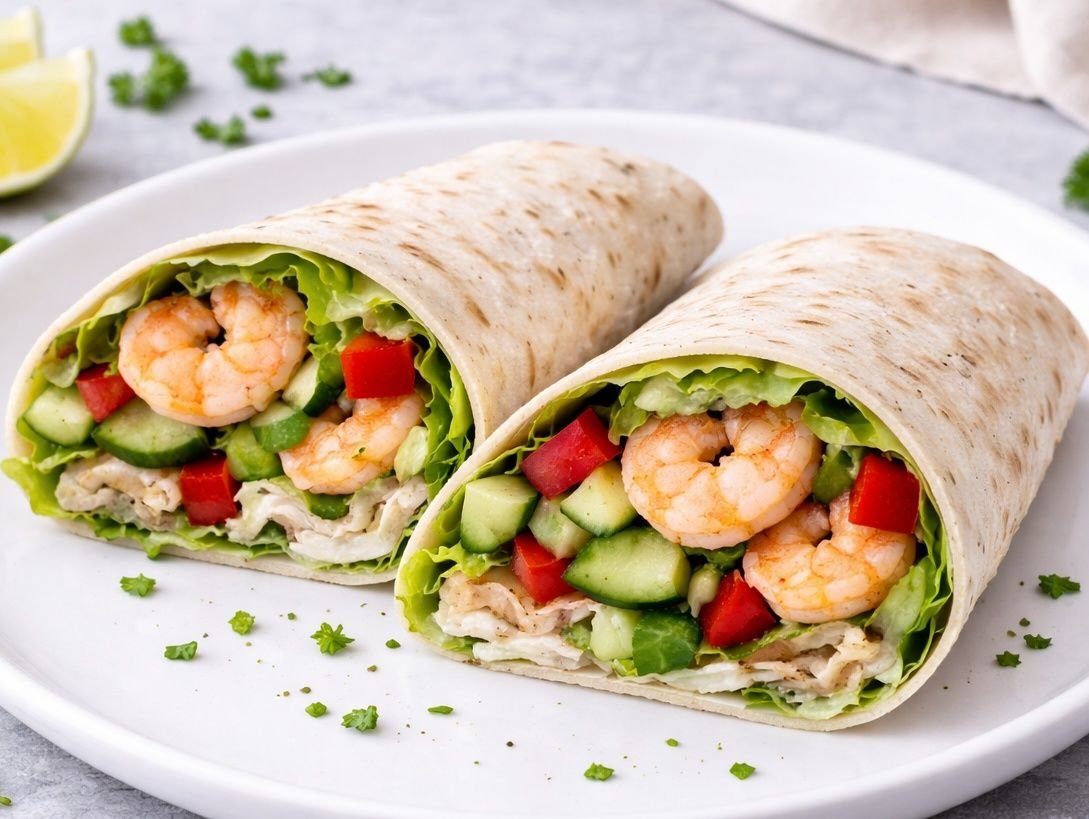 Lavaš plněný krevetami a zeleninou