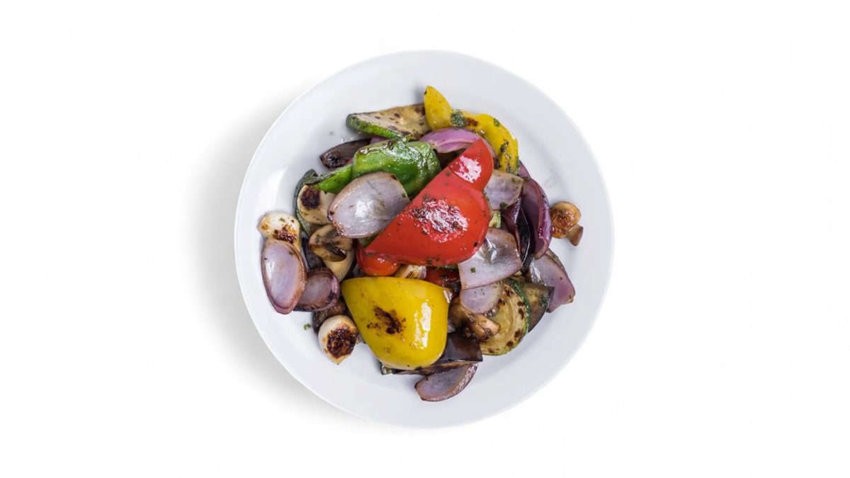 Grilovaná zelenina, uzená, pestrá směs, zdravá, šťavnatá a chutná příloha.