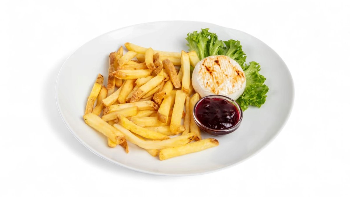 S brusinkami a bramborovými hranolky.
