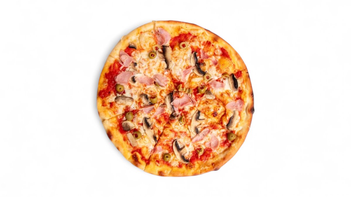 Tomatová omáčka, mozzarella, žampiony, šunka, olivy