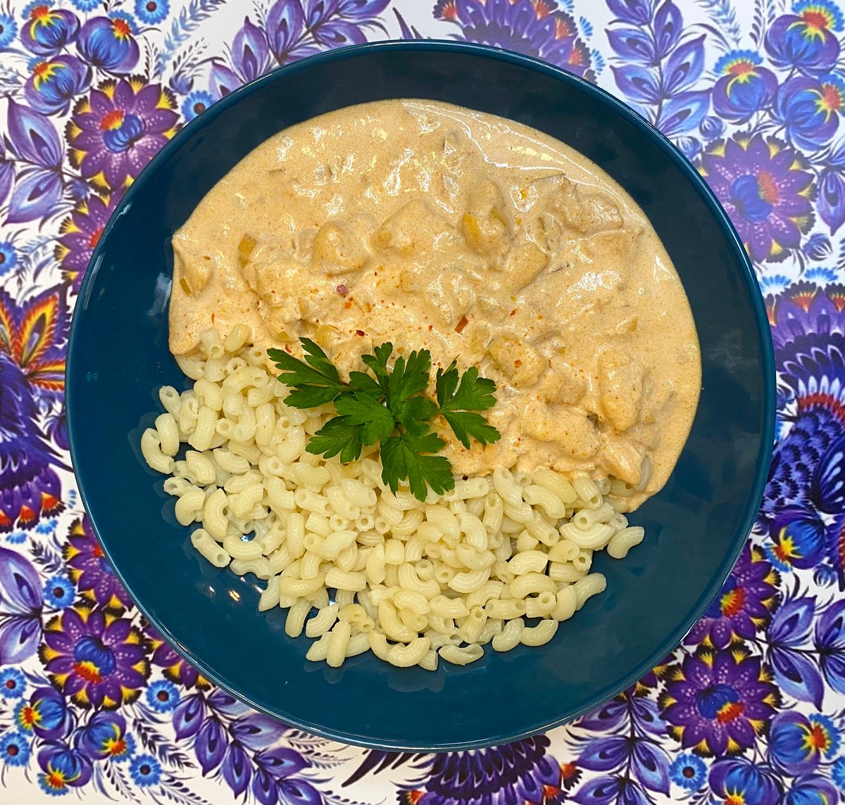 Kuřecí maso dušené s cibulí, smetanou a paprikou