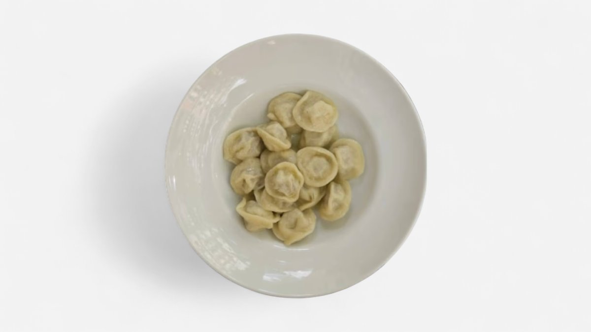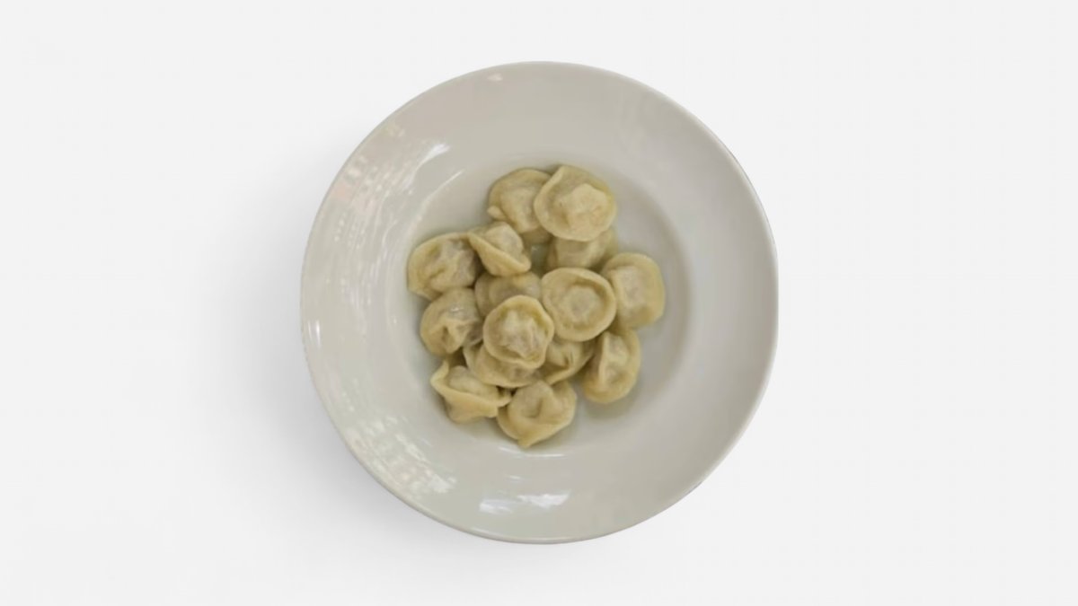 Pelmeně z tenkého těsta plněné kuřecím masem a cibulí, vařené ve vodě. Podávají se s máslem, zakysanou smetanou a bylinkami. 15 ks.