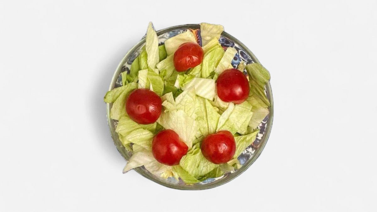 Ledový salát s čerstvými okurkami a rajčaty, ochucený olivovým olejem, medem a balzamikovým octem