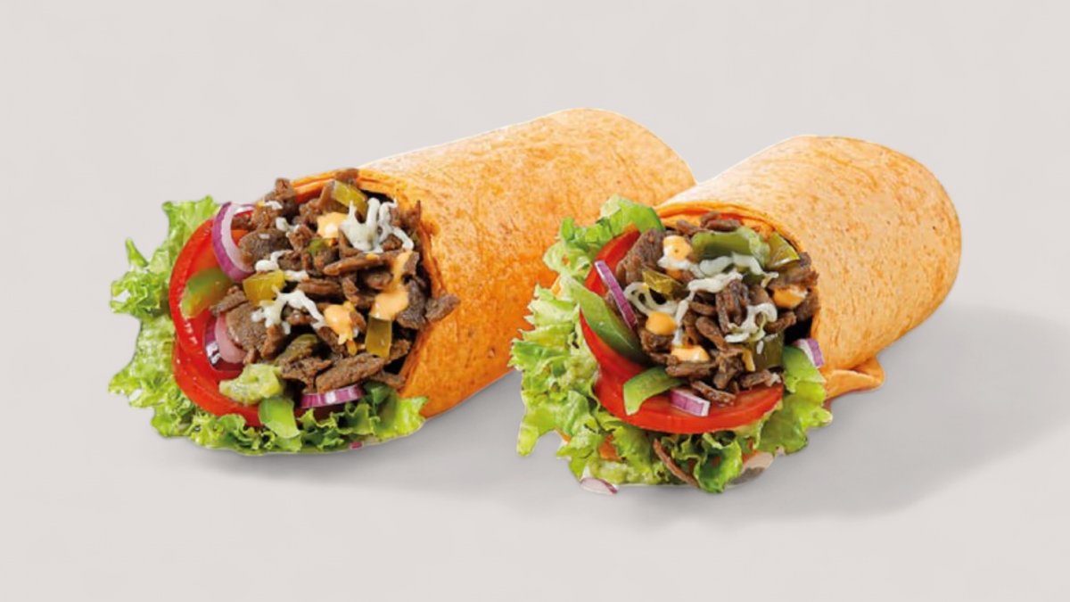 Čerstvé naplněné wrapy s dvojitou porcí masa, zeleninou a omáčkou
