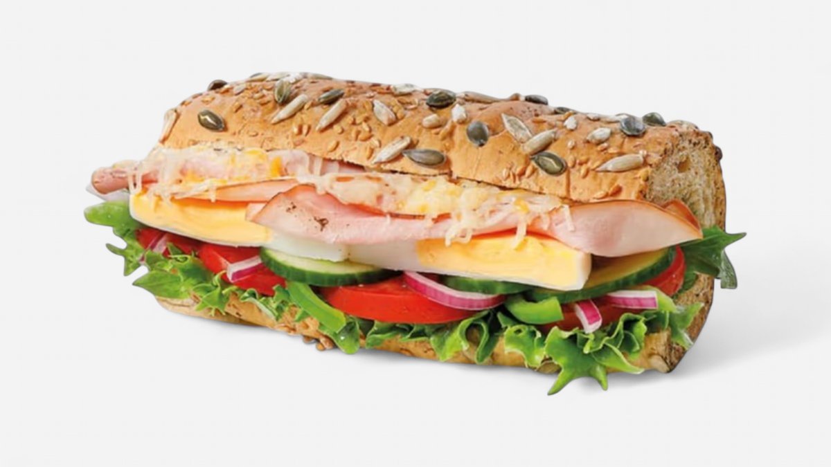 Zapečený sendvič s hovězím, s mozzarellou, plátkovým sýrem, cibulí a paprikou doplněný lehce pikantní Chipotle Southwest omáčkou.