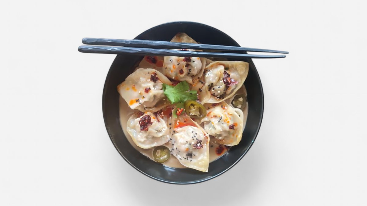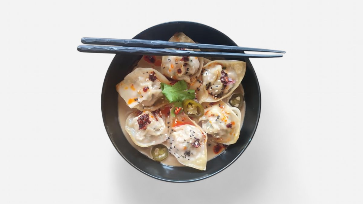 Wonton ramen kuřecí vývar s beyond meat knedlíčky a chilli olejem