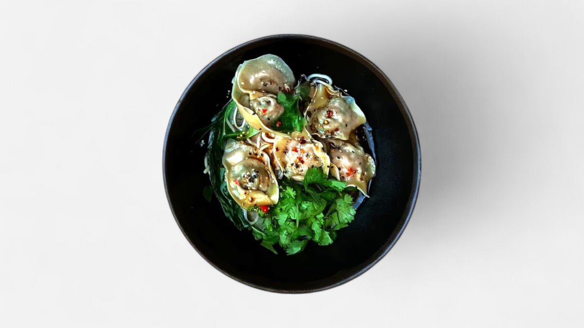 kuřecí vývar, dashi, pšeničné nudle, 5 ks vepřových wonton knedlíčků, bok choy, koriandr, domácí chilli olej, jarní cibulka