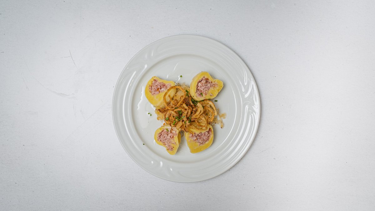 Plněné bramborové knedlíky uzeným masem