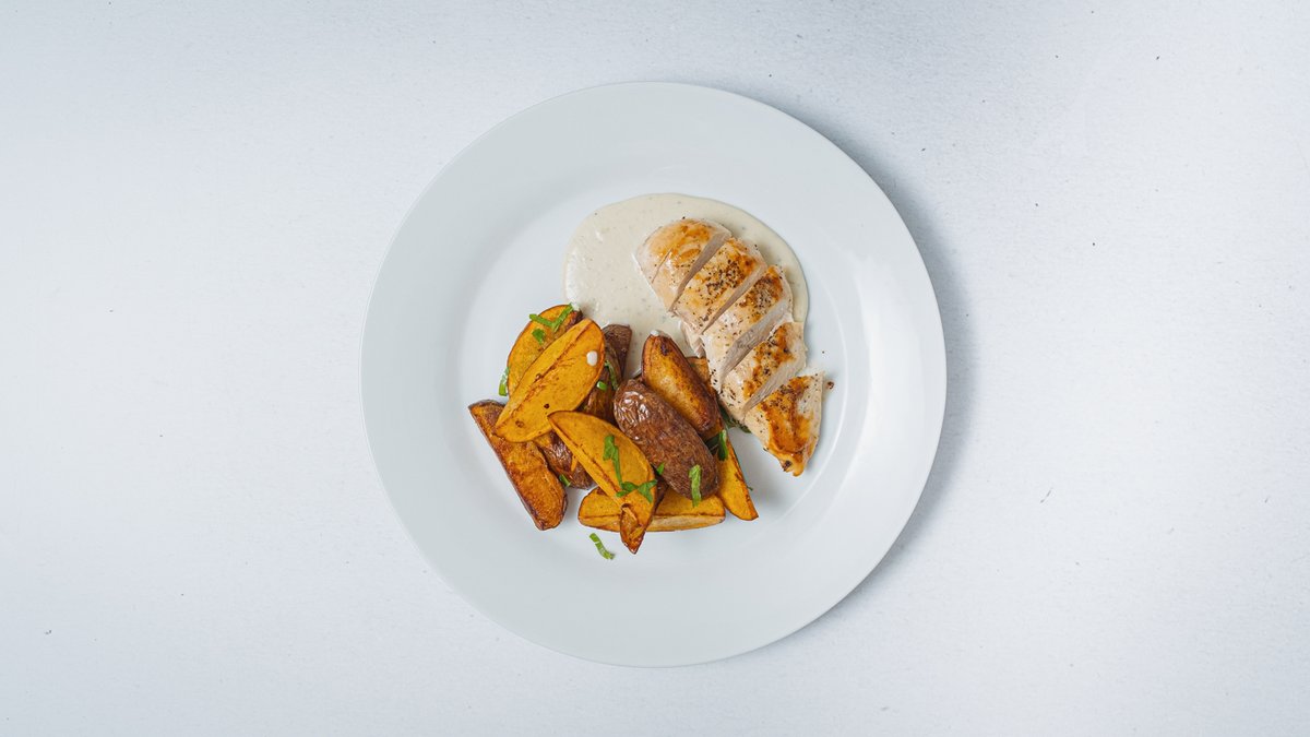 s chilli a grilovacím kořením s opečeným bramborem a šťávou