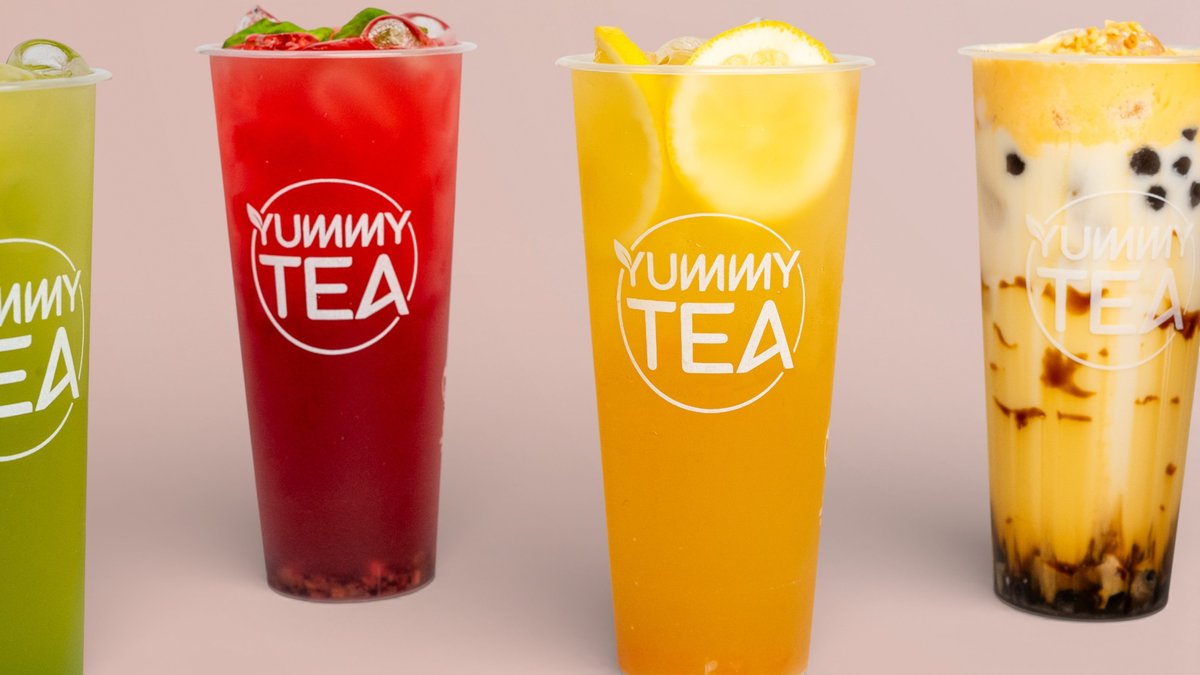A wide selection of bubble tea featuring vibrant flavors, from matcha to fruity teas and creamy milk blends.