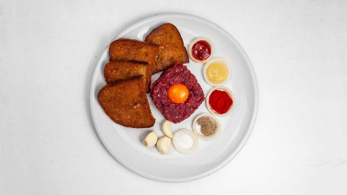 Tatarský biftek z hovězí svíčkové (1,3,10,12)