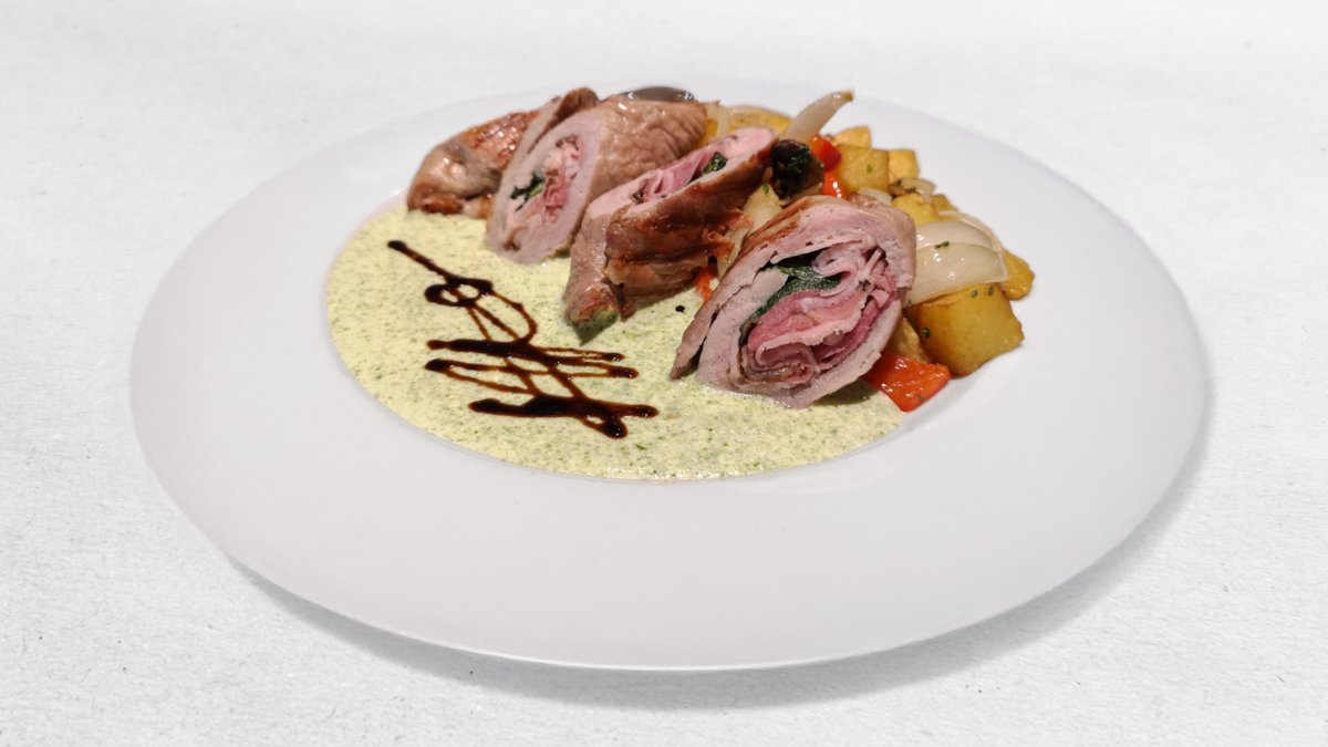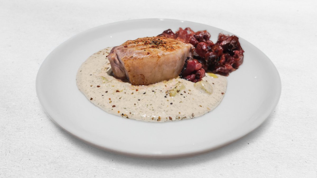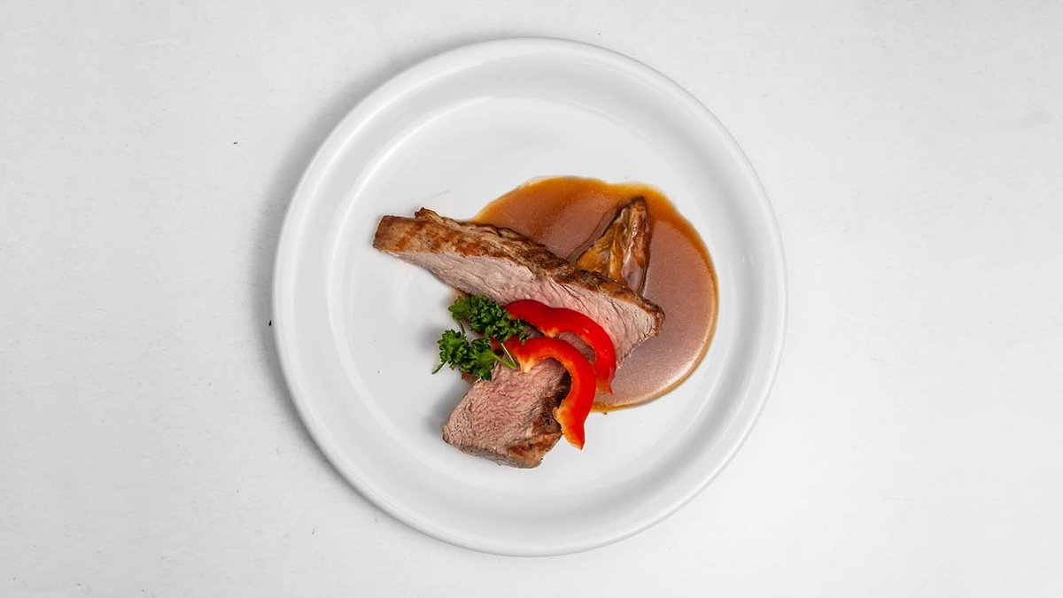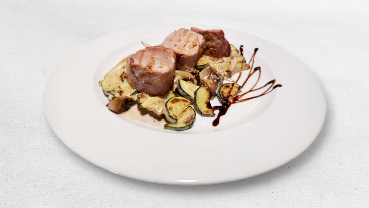 Grilované schody z vepřové panenky s cuketovým ragů (7,9)