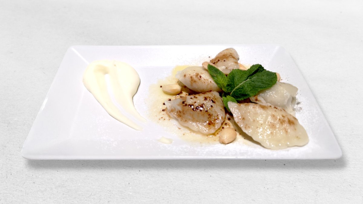 Povidlové taštičky se sladkou zakysanou smetanou a mandlemi (1,3,7,8,12)