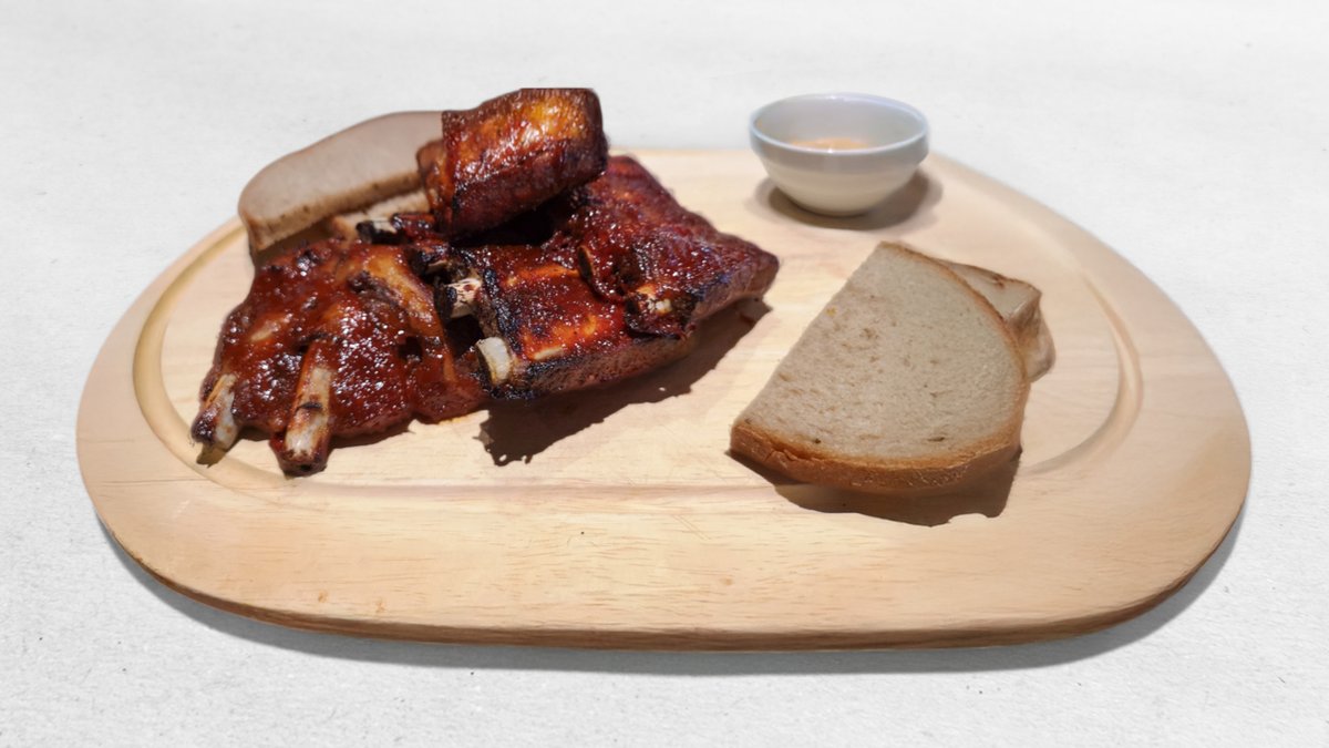 Kuřecí burger s BBQ omáčkou, majonézou, anglickou slaninou, smaženou cibulkou a kyselým okurkem 115g