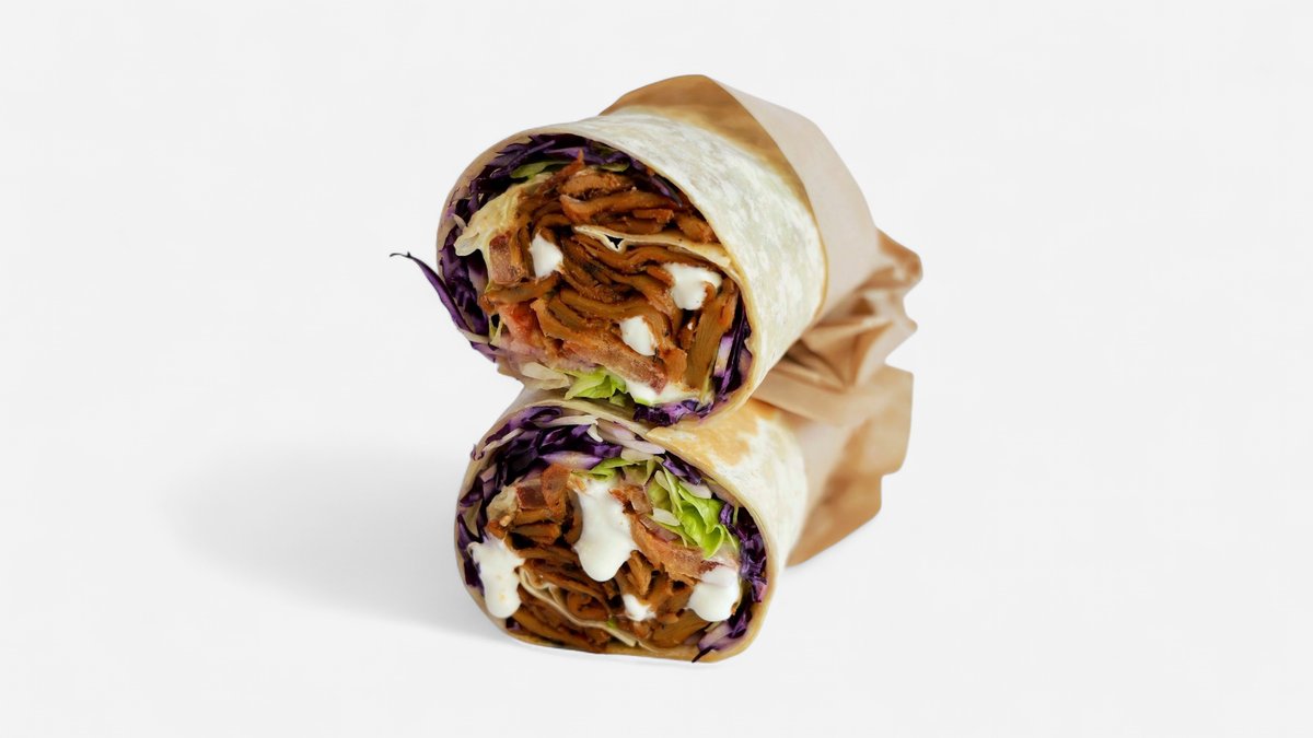 Tortilla, kebab planted, paradajka, ľadový šalát, kapusta, cibuľa, chilli, cesnakový dresing