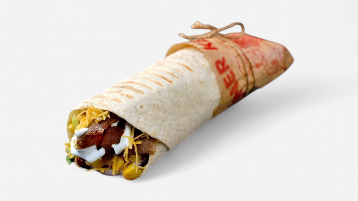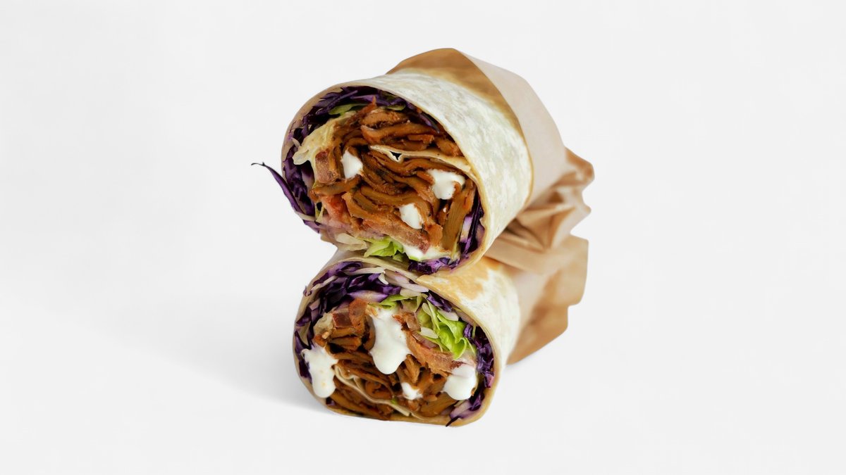 Tortilla, kebab planted, paradajka, ľadový šalát, kapusta, cibuľa, chilli, cesnakový dresing, kukurica, cheddar