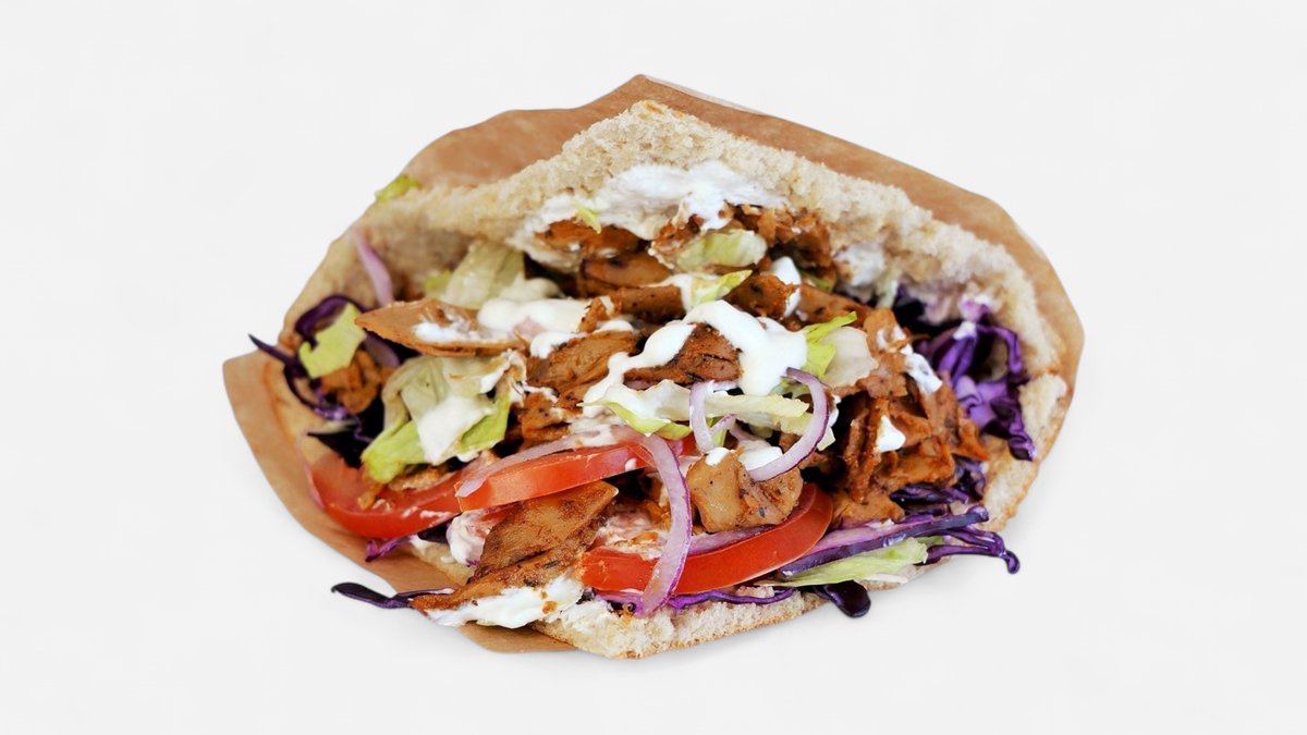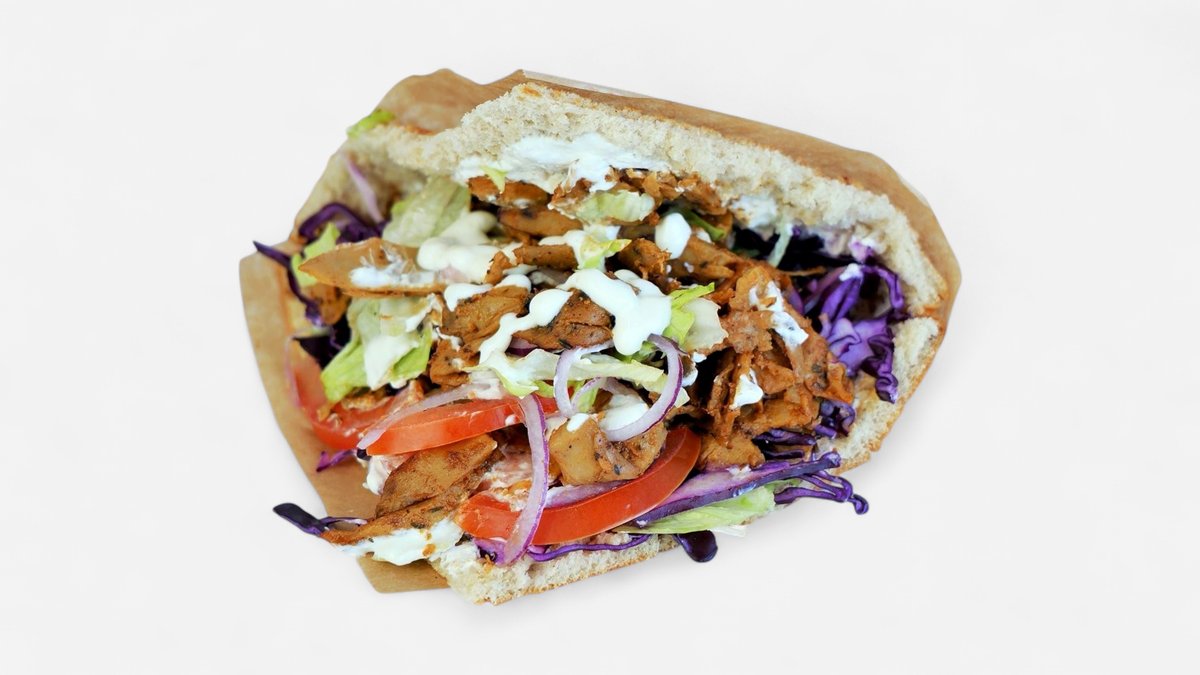 Turecký chlieb, kebab planted, paradajka, ľadový šalát, kapusta, cibuľa, chilli, cesnakový dresing