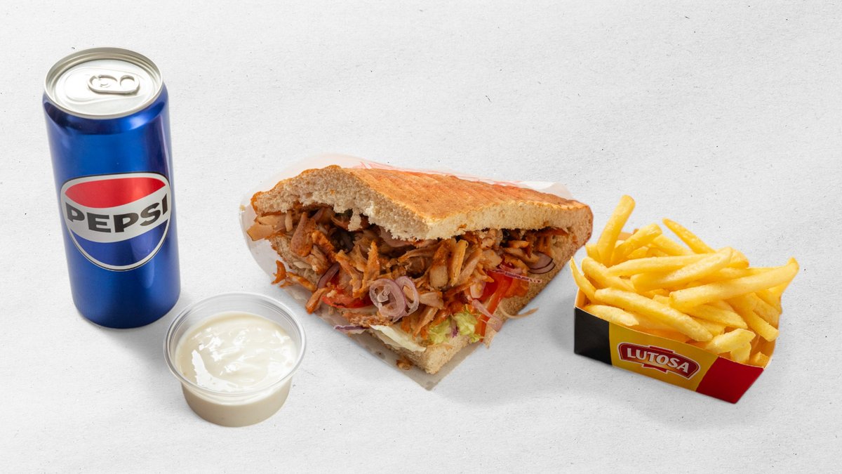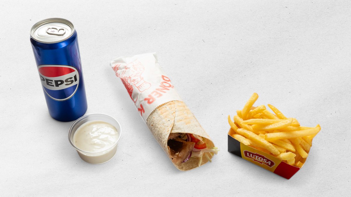 Doner, hranolky, dresing, nápoj 0,33 l