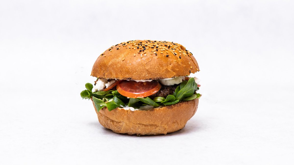 žemľa, cheddar, ľadový šalát, balkánsky syr, olivy, paradajka, tzatziki dressing, (150g) mäso podľa výberu 380g / obsahuje: 1, 3, 6, 7, 11