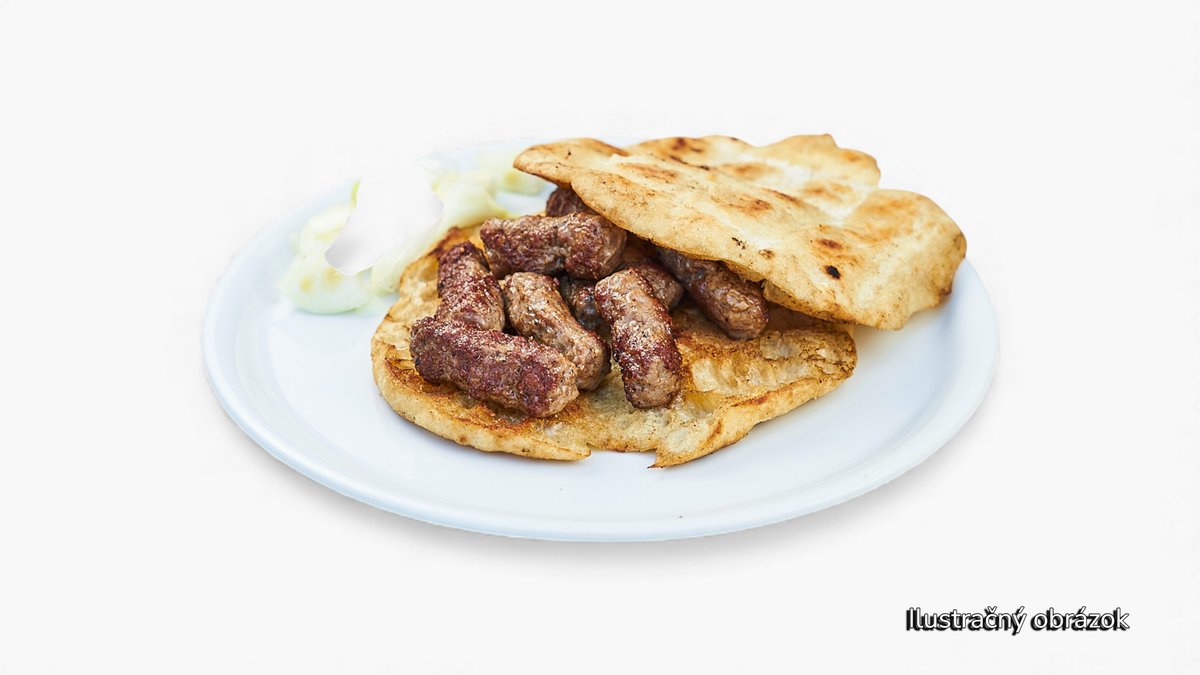 zapečená žemľa,čevapi 130g,krémová nátierka,ajvar,cibuľa 290g