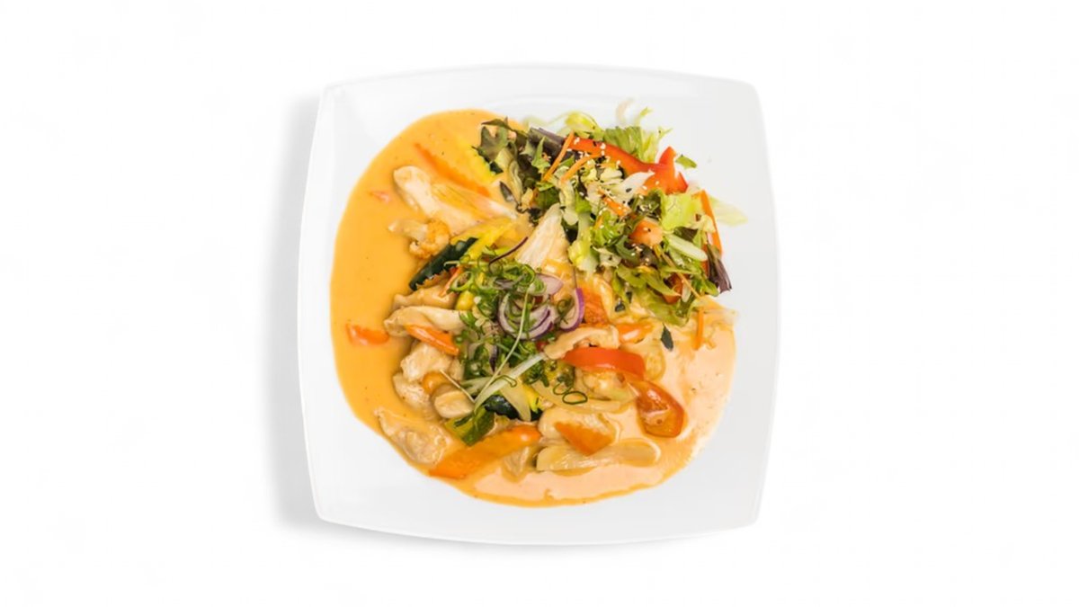 Thajská jemne pikantná kokosová polievka s shitake hubami, cherry paradajkami, červenou cibuľou, koriandrom, chilli papričkami s kúskami kuracieho mäsa alebo krevety. 0,5l