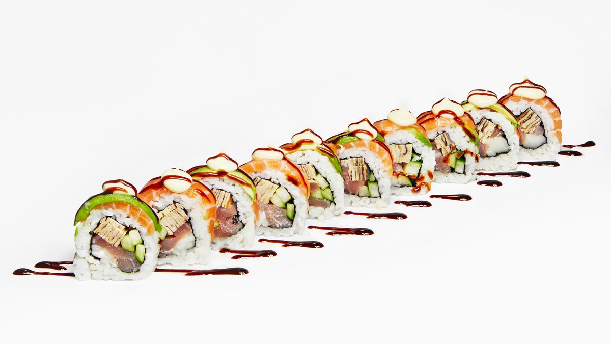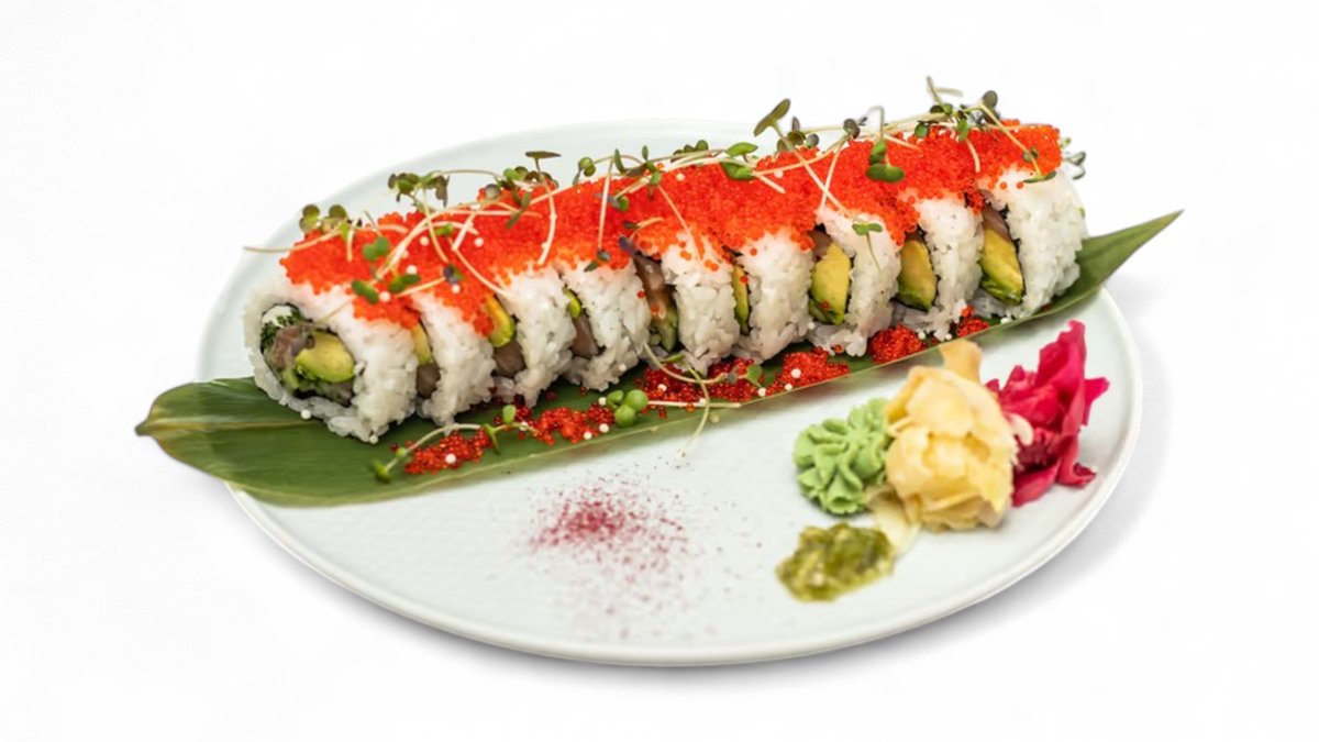Veľká rolka plnená tamagom, torpédo krevetami a wasabi. Na vrchu prekladaná plátkami avokáda a sladkovodného úhora. 250g