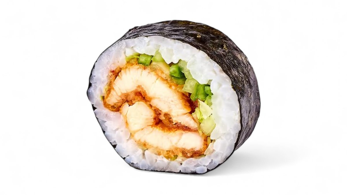 Rolka plnená vyprážanými krabími tyčinkami, úhorom, prekladaná plátkami tamaga a preliata unagi omáčkou. 230g