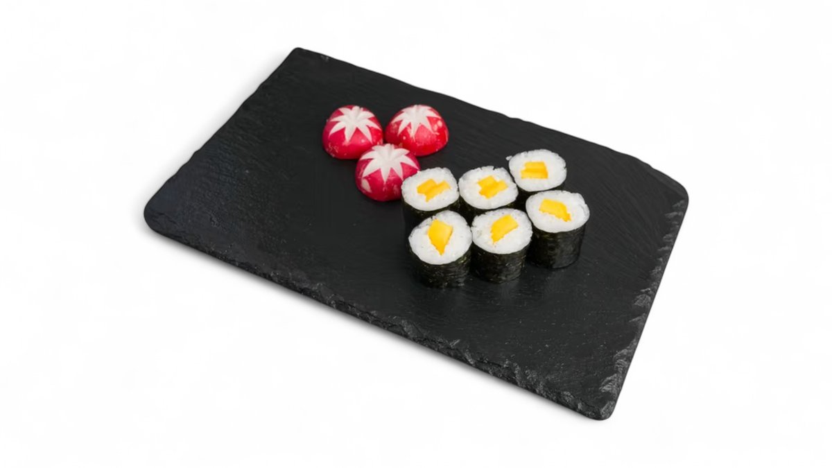 Vegetariánska rolka plnená uhorkou, avokádom, mrkvou, hubami shitake, japonskou reďkovkou a kápiou. 240g