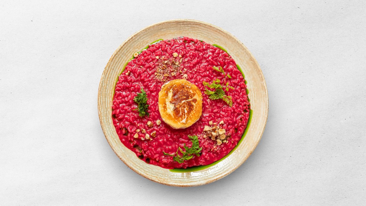 Cviklové rizoto s kozím syrom a pečenými lieskovými orechmi